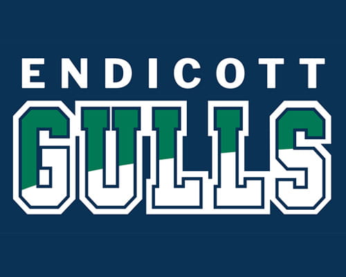 Secondary logos are important for brand recognition and consistency, and a few variations have been established to support the graphic needs of Endicott athletics. While the primary logo is the preferred logo version, secondary logos may be used upon approval from the Office of Communications & Marketing. Please note that all secondary versions marked with an * (which do not include the Gull) must be used in conjunction with a primary athletic logo.