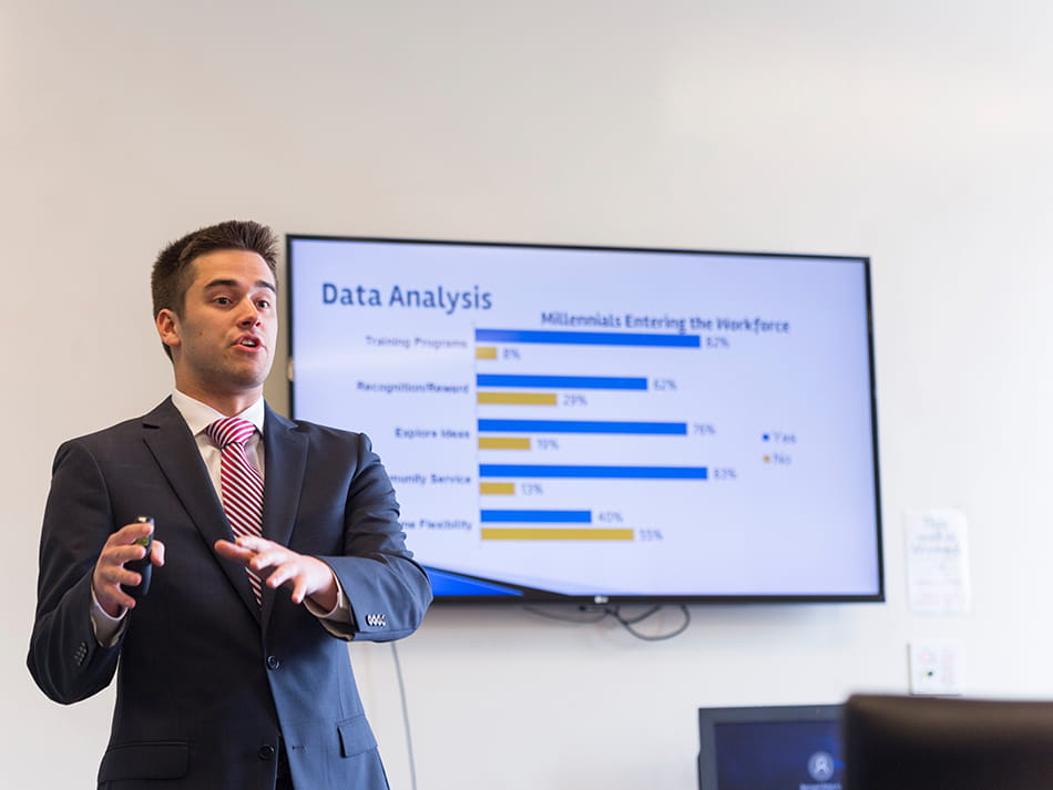 Students establish a solid academic foundation while gaining hands-on, experiential, and resume-building experience through our nine degree programs: accounting, business management, entrepreneurship, events management, finance, healthcare management, hospitality management, international business, and marketing.