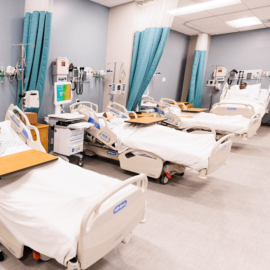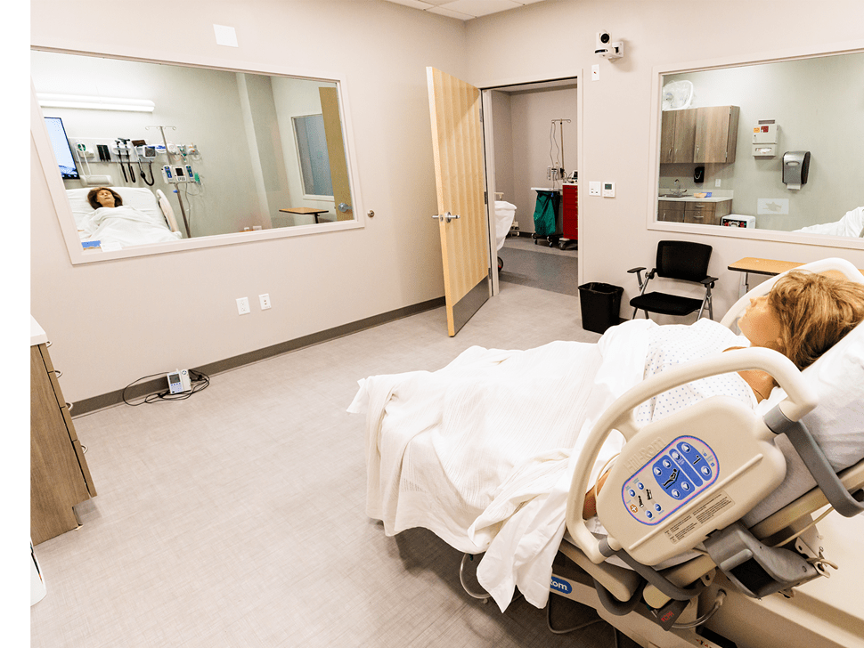 Students participate in lab simulations and practice nursing skills and procedures in a simulated hospital setting long before entering a hospital. Spending time in our nursing simulation labs is a key part of our program and prepares you to be an active participant in a live clinical setting.