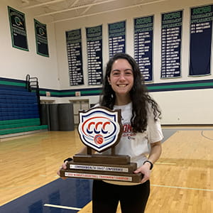 • Making your own tools—“I have a mental health chart that I started last year because in the spring I was struggling a little more due to things going on with friends. I thought that it would be a good way to keep track of how I was feeling and if I could find things that would make me feel better. Coloring in the chart is probably my favorite part of my day. It has really helped me. Purple is my amazing day and I can look back at the chart and remember those days, like when we won the Commonwealth Coast Conference championship, and then I can look at the red days, which are the awful, end-all, be-all days and can think about what I can do better.”