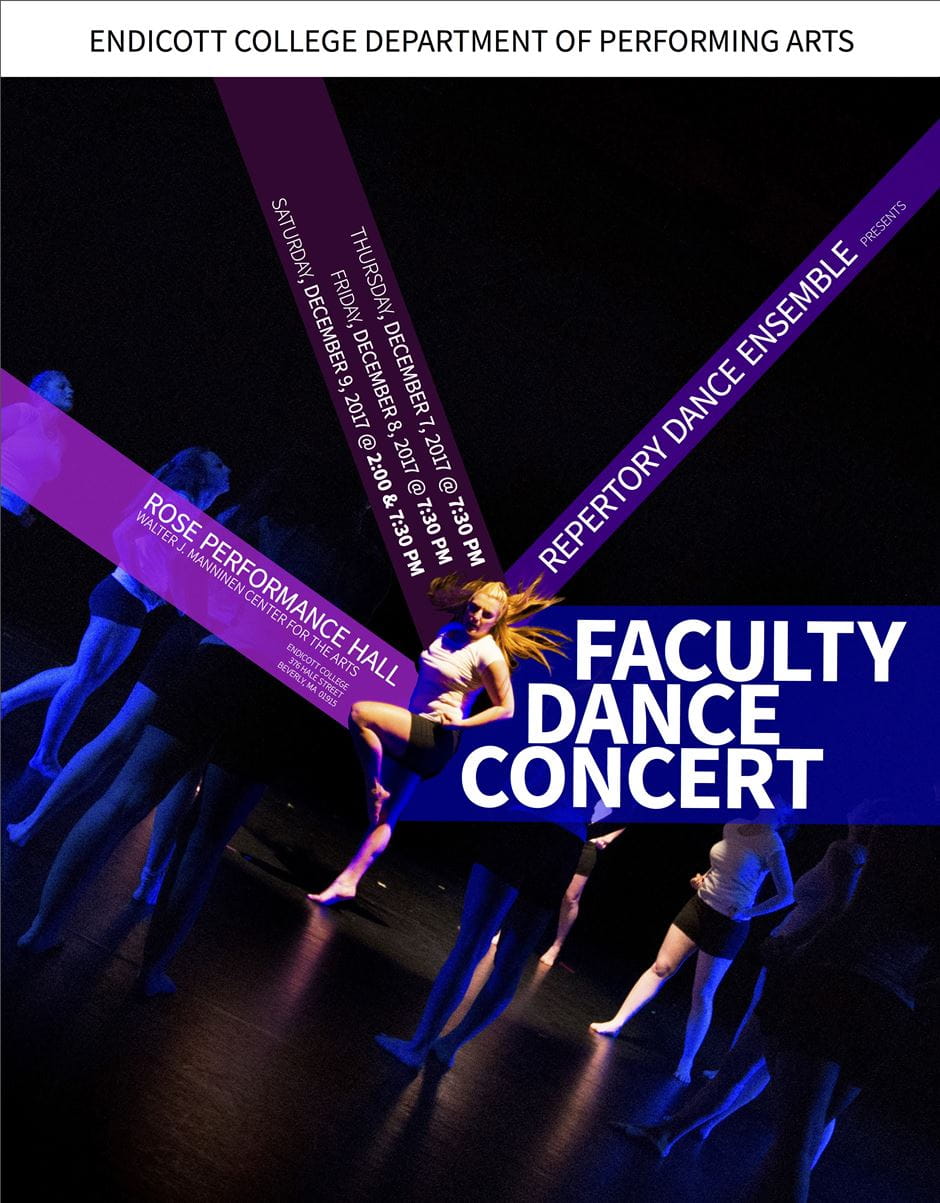 Due to the impending snow storm, Saturday's performances of the Faculty Dance Concert will be at 1:00 p.m. and 4:00 p.m. Please watch Endicott College social media channels for any last-minute updates.