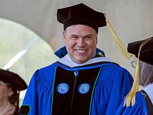 At Endicott’s undergraduate commencement ceremony on May 25, Garold C. Miller, chief executive officer at HALO, urged the class of 2019 to never give up. “I’ve heard ‘no’ hundreds and hundreds of times, but I refused to believe that the things I had built had to be like things that already existed,” Miller said. “Society has enough conformists. We need more people who don’t give up when they hear ‘no.’”