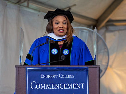 At Endicott’s Van Loan School commencement ceremony on May 23, at which many graduate students and some adult undergraduate students crossed the stage, NBC10 Boston’s Latoyia Edwards advised the class of 2019 to follow their passions, to take ownership of writing their own story, and to find ways to help others. “I challenge you, on your continued climb, to reach back and give someone else a boost along the way,” Edwards said.