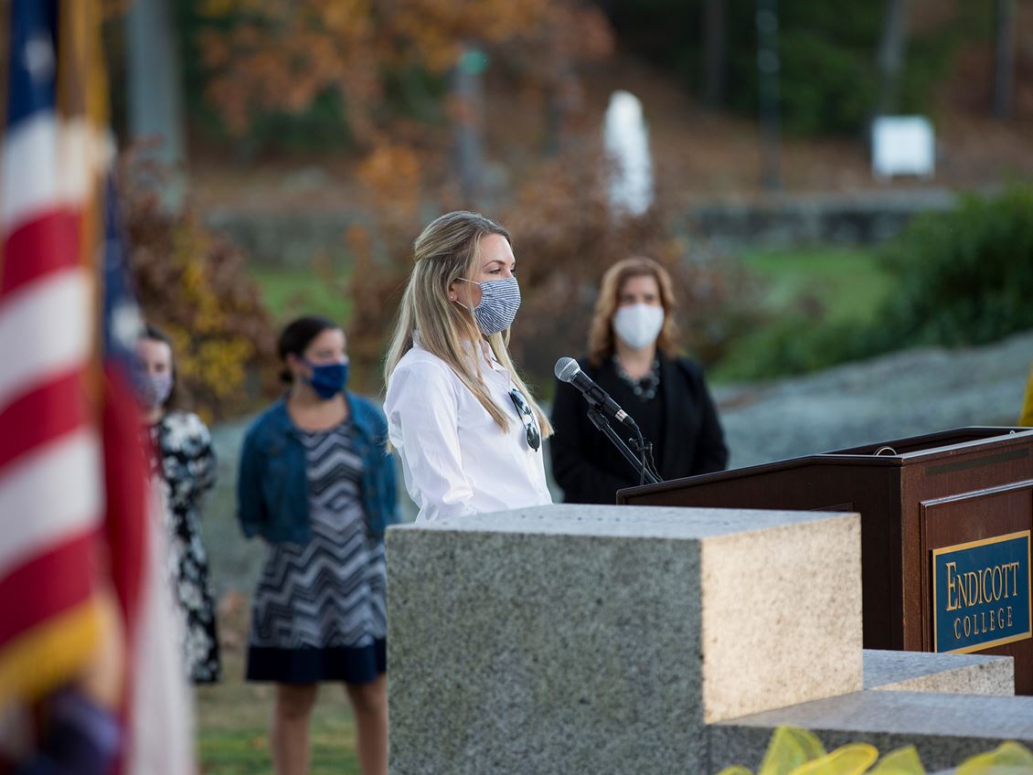 Katherine Roberts ’20 M’21 graduated with her bachelor’s degree in psychology through the Van Loan School of Professional Studies this past May. She is currently obtaining her master’s degree in homeland security and has served in the military for the last eight years. Roberts is leveraging her experience in the Coast Guard, her education, and the Endicott College community to make a positive impact on the veteran community. As the President of the Veterans Club on campus, Roberts, alongside her fellow E-Board members—Club Vice President Patrick Joseph ’23 and Club Secretary Brandon McCauley ’23—is creating what she describes as, “an inclusive network that connects student veterans with other student veterans and allies. Its mission is to foster successful military transitions through facilitating supportive campus and public service engagements that serve the greater Endicott community, while raising veteran familiarity on campus.”