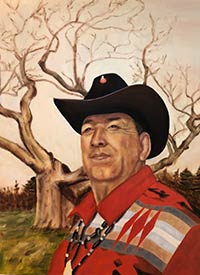 She worked out processes and techniques in that first course and then pushed herself to convey social messages and historic commentary in Painting II, where Professor of Art Carol Pelletier strongly motivated Araujo to push forward with a series of work examining Native culture.