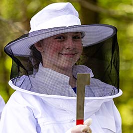 But the risk paid off. Today, the bees are thriving in their new home—two hives nestled in the woods just behind Lot 12 on the Endicott College campus. And Mersicano is now president of the new Beekeeping Club responsible for their care and the honey they’ve started to produce.