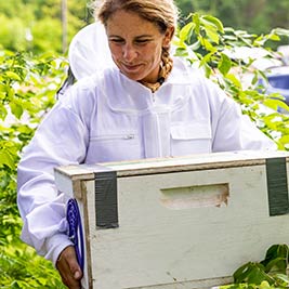 Olivia Mersicano ’22 clutched the steering wheel as she drove back to Endicott from a local farm. It was easily the scariest 30-minute drive of her life. In the backseat sat two loosely sealed wooden boxes containing around 2,000 bees each—and they were angry. She could hear the high-pitched whining of their wings rubbing together and their muscles contracting. “It was the most stressful drive,” she remembers, shaking her head.