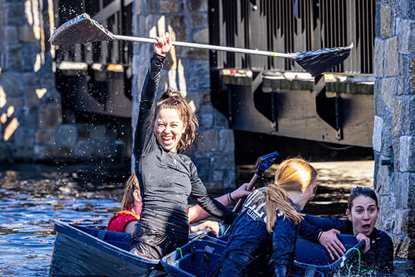 A beloved Spring Week tradition, the annual Regatta of the Lakes drew brave students to sail makeshift boats—sourced from found materials—across the lake and back.