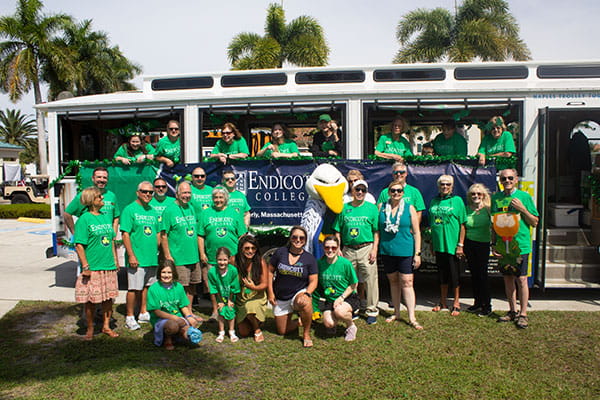 In March, President Steven R. DiSalvo traveled to the Sunshine State for the College’s annual Florida Swing, a gathering of alumni and Endicott community members. As part of the festivities, President DiSalvo, Endicott staff, and members of the alumni community took part in the St. Patrick’s Day Parade in Naples.