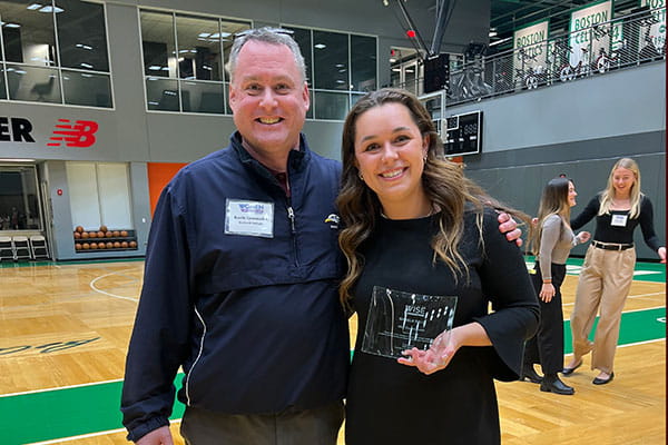 Sport management major Shaela Nally ’24 was honored with the WISE Woman of Inspiration Student Award at a December 11 ceremony at the Auerbach Center in Boston.