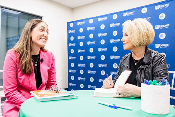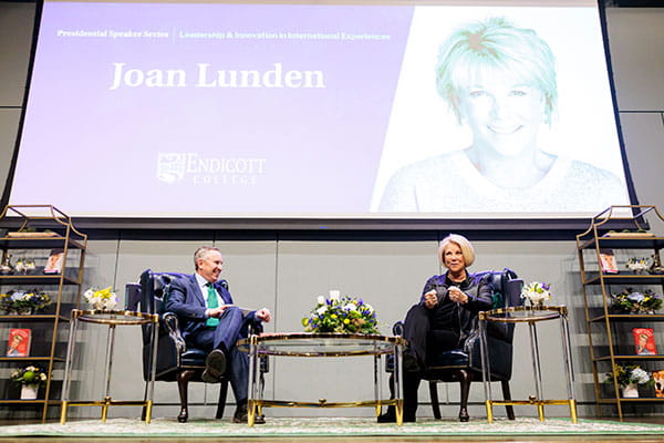 Joan Lunden may be used to asking the questions, but she flipped the script at Endicott College on March 4, sharing colorful stories from her years as host of Good Morning America as part of the second annual Presidential Speaker Series, made possible through a generous commitment from Arlene Battistelli ’60.