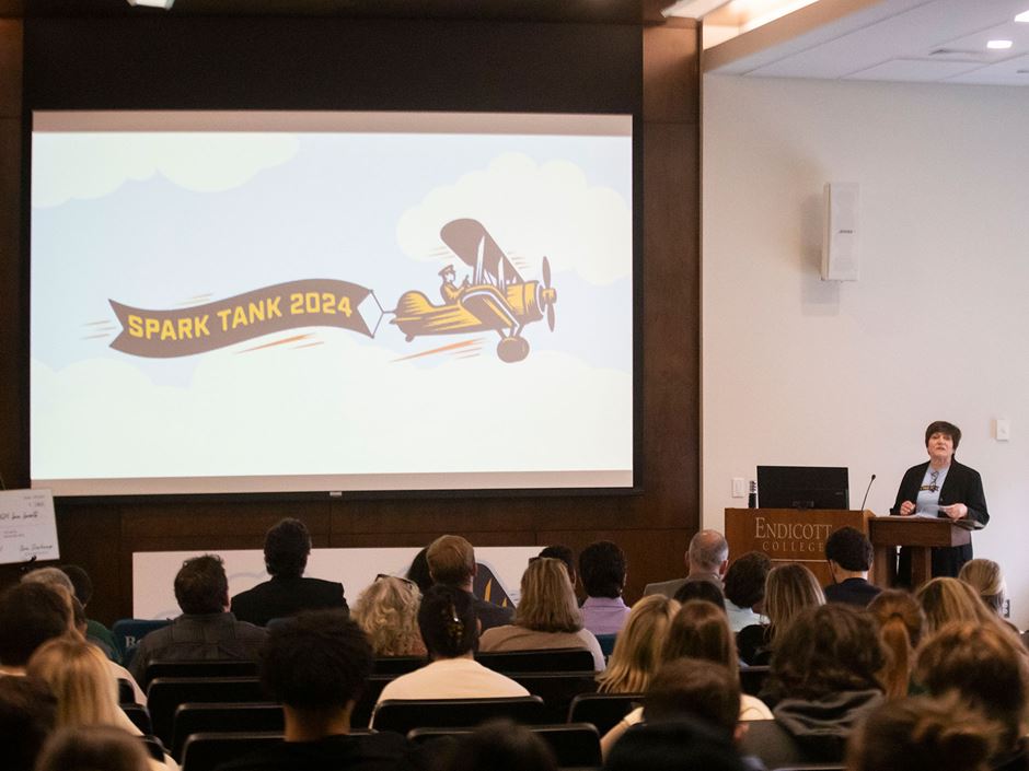 That’s what Provost Sara Quay told the audience at Spark Tank, Endicott’s Shark Tank-style competition that awards seed money to fund entrepreneurial student and alumni ventures, on April 17.