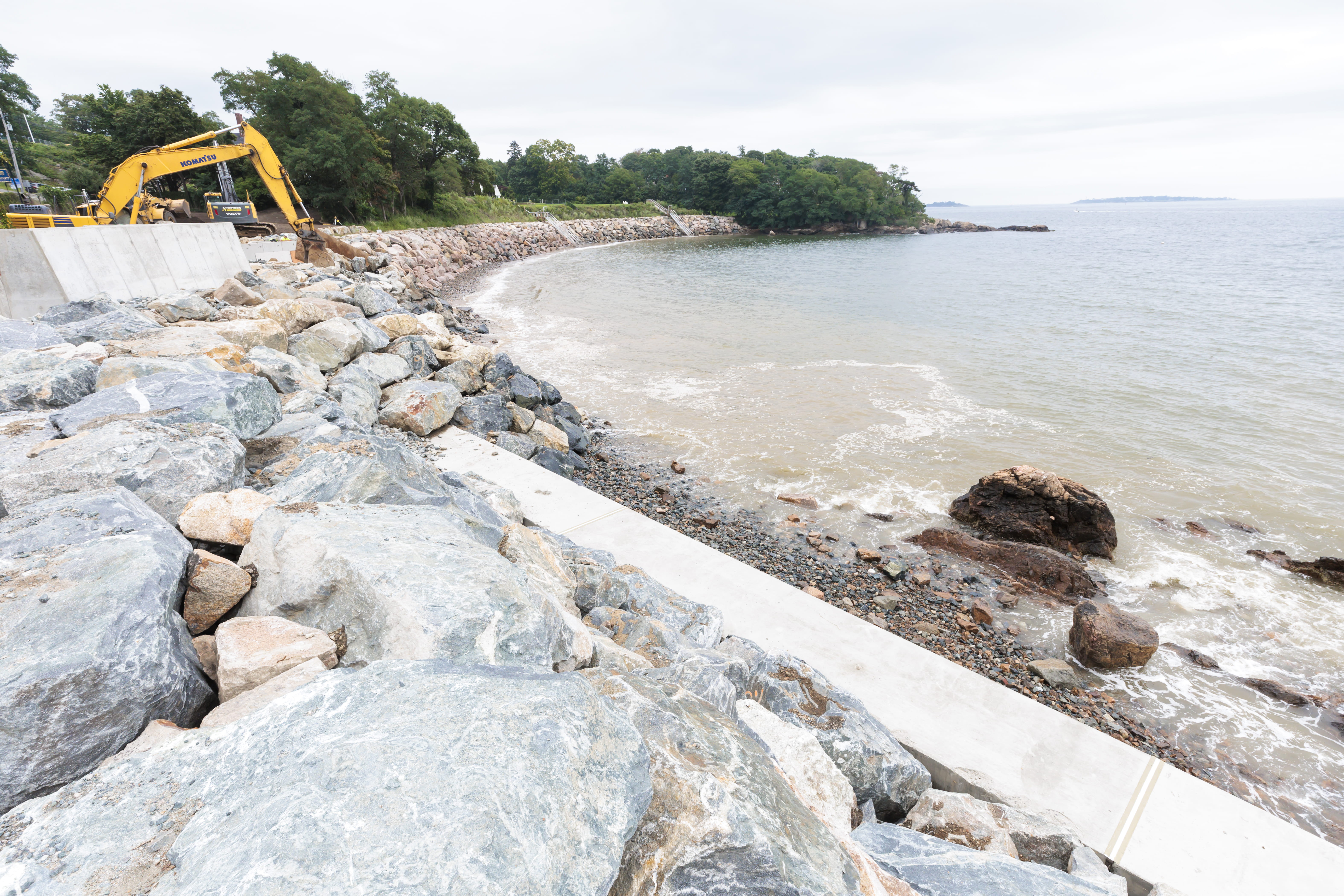 After a 2018 Nor’easter severely damaged the stone seawall overlooking Endicott Beach, the College partnered with Foth to design and implement a sloped stone revetment to replace the vertical stone seawall, ensuring protection against a 100-year storm and a service life of at least 75 years. The project, executed with Northern Construction, LLC, stabilized the shoreline and rebuilt 750 linear feet of coastal defense on time and within budget. The beach is slated to reopen in September.