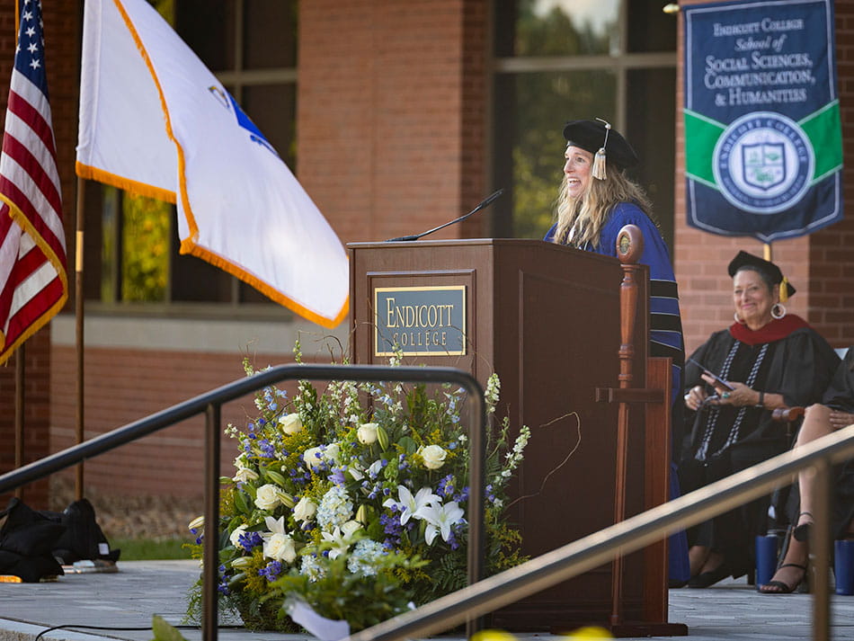 Convocation, which included a rousing performance from the Endicott Singers, also featured remarks from elementary education major and Student Government President Jordan LaValley ’25.