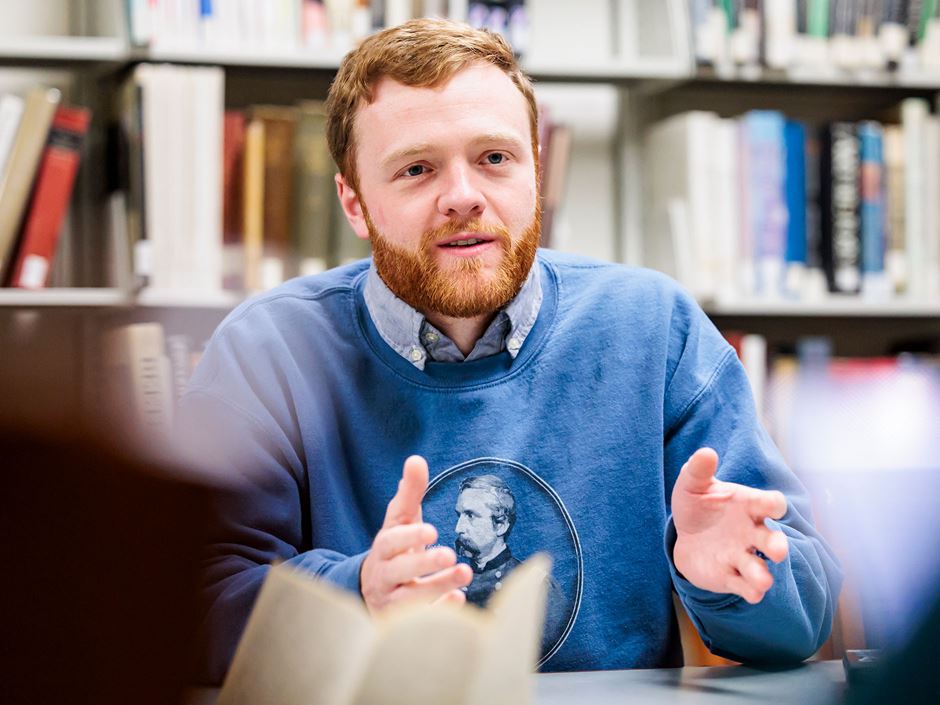 With Collins’ financial backing, Curley also enlisted two Michigan-based freelancers: Isaac Burgdorf, a recent University of Michigan graduate, and Lenny Fritz, a junior at Hillsdale College. Burgdorf was tasked with photographing Litchfield’s letters for a digital archive and Fritz the transcription of Carver’s letters.