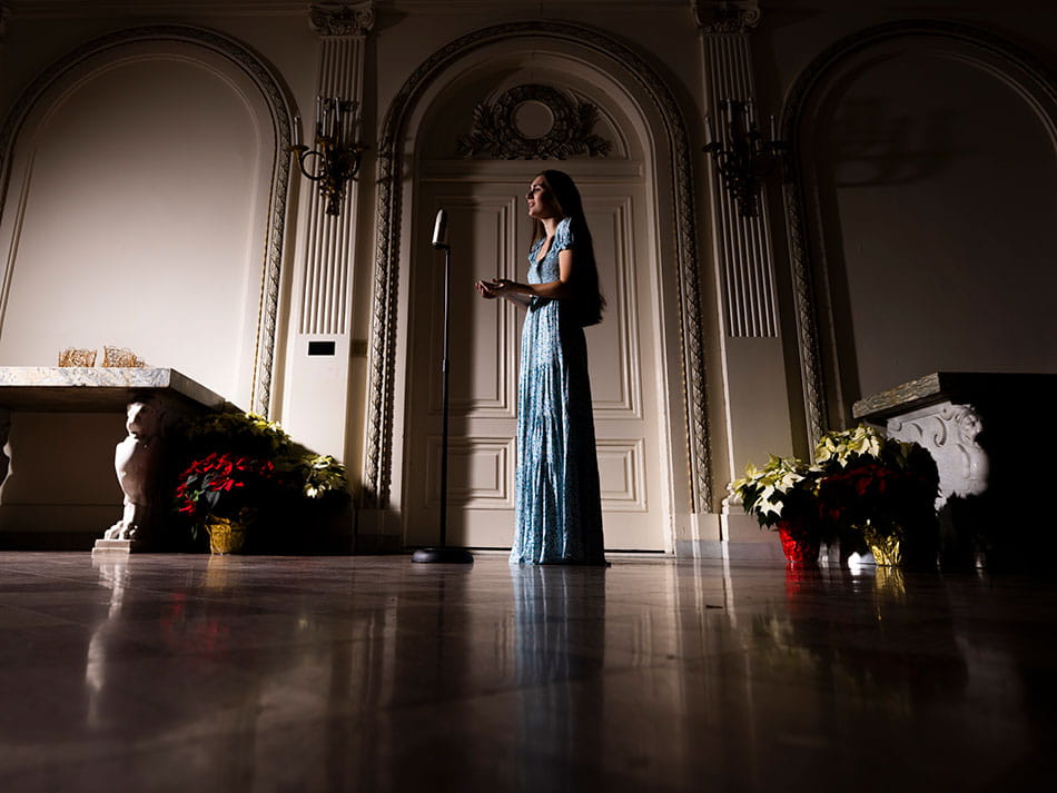 While on an educational trip to Reggio Emilia, Italy, Mia Ray ’26 paused under a stone archway, took a deep breath, and began singing in Italian.