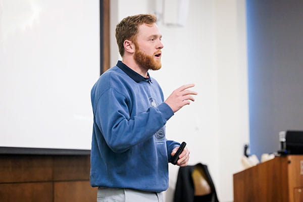 Several standout stories took the stage, including former Angle Center graduate assistant Ryan Curley ’23 M’24, who returned to Spark Tank to pitch a more compelling—and authentic—way to share history with consumers and educational institutions.