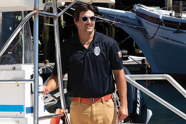 Robbie Genaway ’23 gained real-world experience when two paddle boarders were swept out to sea during his summer internship with the Gloucester Harbormaster. After racing out to sea, Genaway spotted and successfully rescued the pair.