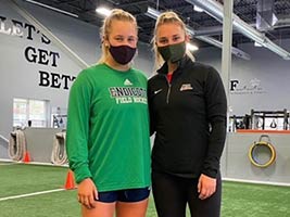 Endicott College student-athlete Jenna Seibold ’24 spent December 2020 changing an everyday workout with a friend and fellow athlete into a game-changing fundraiser. Last winter, in New England, Seibold and her workout partner and friend Sammy Davis of Boston University swam repeatedly in the freezing cold to raise funds and general awareness of the Travis Roy Foundation.