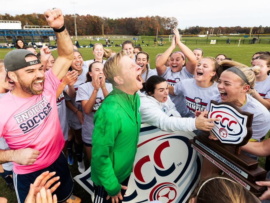“Endicott women’s sport for the first decade in the NCAA propelled all sports on campus,” said Dina Gentile, Professor of Sport Management and Esports Management, and the first women’s soccer coach at the DIII level at Endicott. “If we did not have success and high-level coaches on the women’s side at Endicott, we would not have the teams on the men’s side that we see thriving today.”