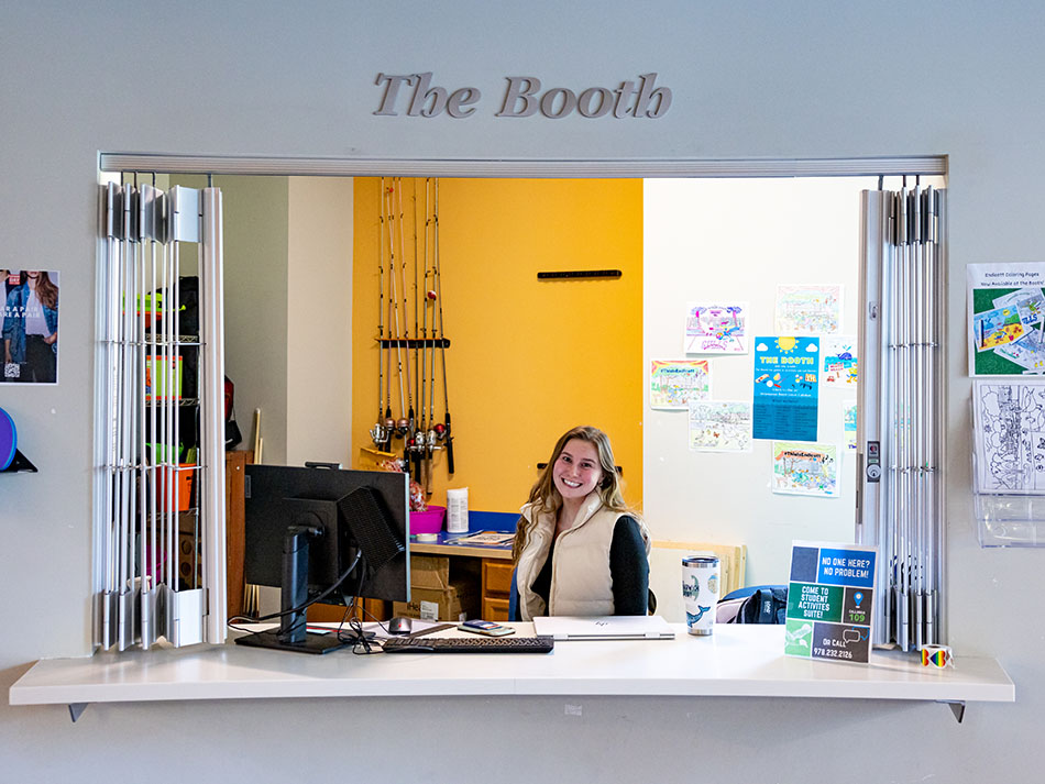 The information booth is a student-run service that provides resources for the campus community, located on the first floor of the Callahan Center.